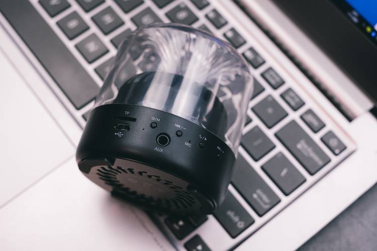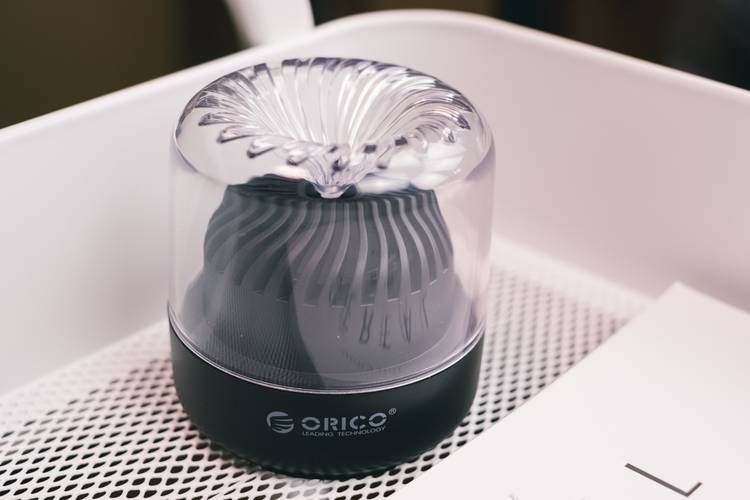 这款蓝牙音箱同样采用透明设计,可以看见透明与黑色的结合下形成的音浪飓风造型真的是很Nice。