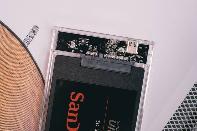 移动硬盘盒,它的整体设计还不错,使用了透明高硬度PC材质,黑色的PCB电路板设计,上面的芯片与主控电容都能直接一览无遗。我个人比较喜欢的就是它使用推拉式设计打开,不需要借助任何的工具,这点对于需要经常更换硬盘的用户来说真的是非常的方便快捷了。
