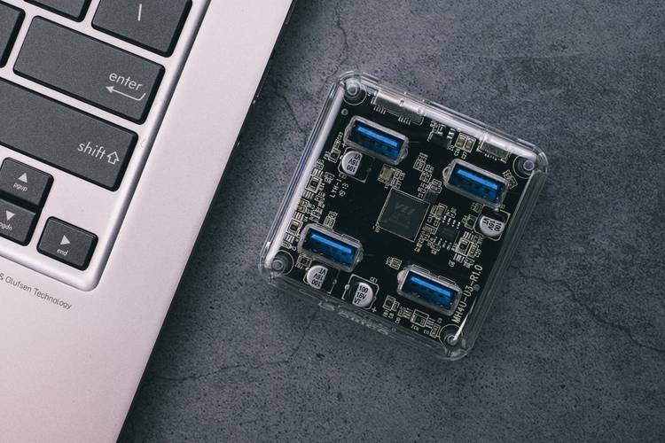一共可以拓展4个USB3.0口,搭载的是VL817芯片,能敢保证充电和传输的稳定性,不管是U盘、移动硬盘、键盘鼠标、读卡器等设备同时使用都没有问题。