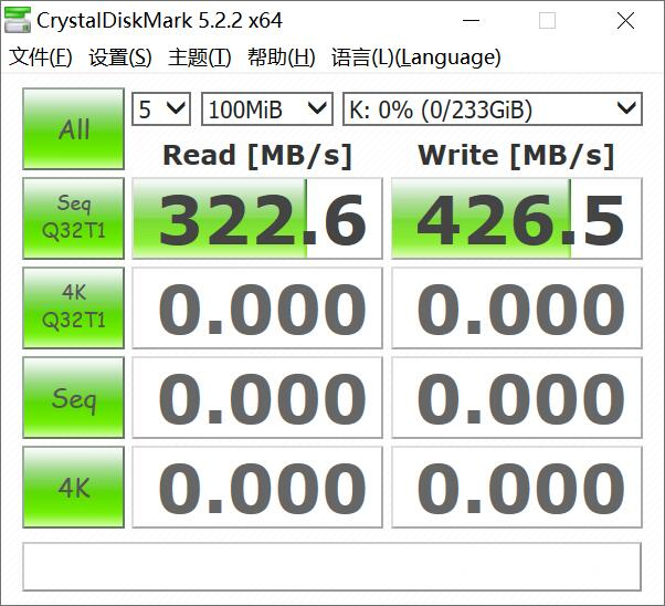 使用软件测试下读写:读取322.6、写入426.5。