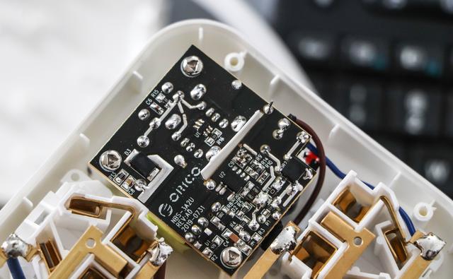 2个USB输出接口,内置智能芯片,可根据不同机型智能匹配出合适的电流,同时也可以给像手环、手表等这些小电流设备充电。安全方面提供了多种不同的保护措施,这个目前是比较成熟的方案,一般没什么问题。标称单口最大输出可达2.4A,双口同时输出也是2.4A,总功率为12W,后面会测试下它的真实输出性能。