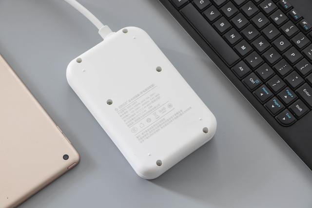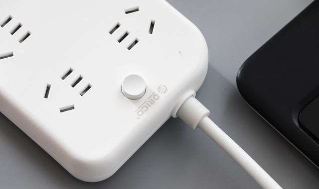 圆型设计中间又带有稍凹的一键总控开关,在操作的过程中手感舒适,键程短且回弹清晰敏捷。真是看腻了老式的那种船型天关,这种很清新很自然。另线材与插线板连接处有做加粗加强防折弯处理,避免长时间拉扯弯折易断的情况发生。