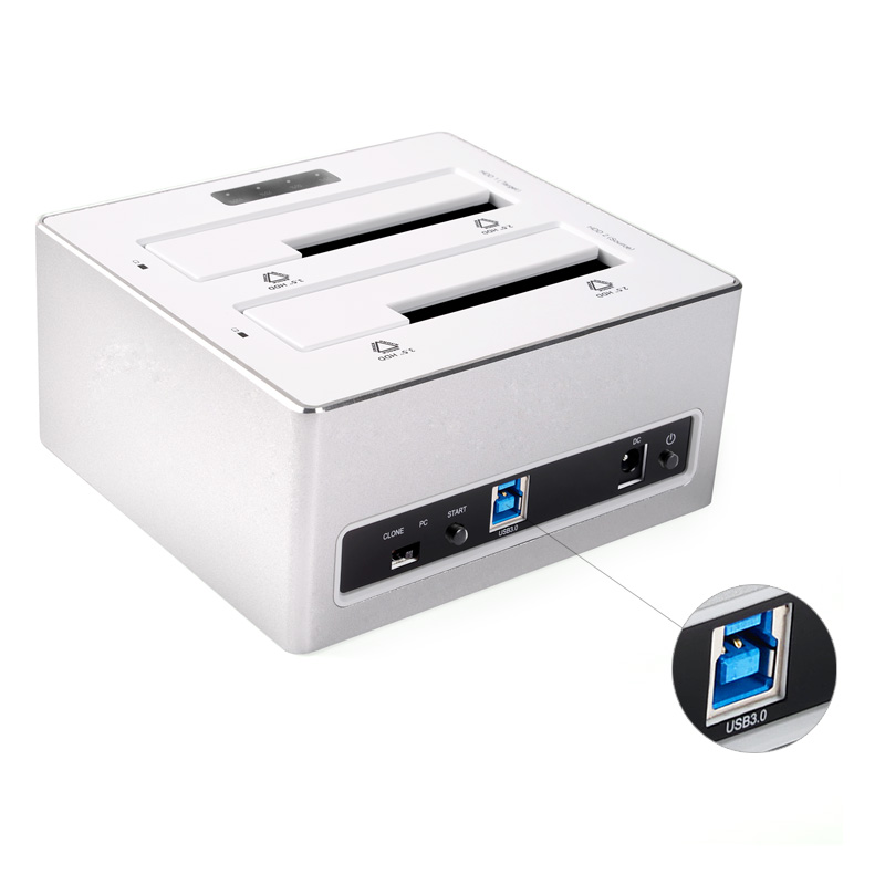 Dual bay hard drive enclosure allows accessing two SATAI,II,III interface 3.5 inch HDD or SSD simultaneously, which gives you great experience of large capacity and saves your time.